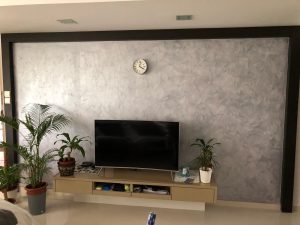 We teared down the wallpaper(which many asked us to tear down for feature wall painting which last longer and not like wallpaper which corners/side might came lose and appear not nice).